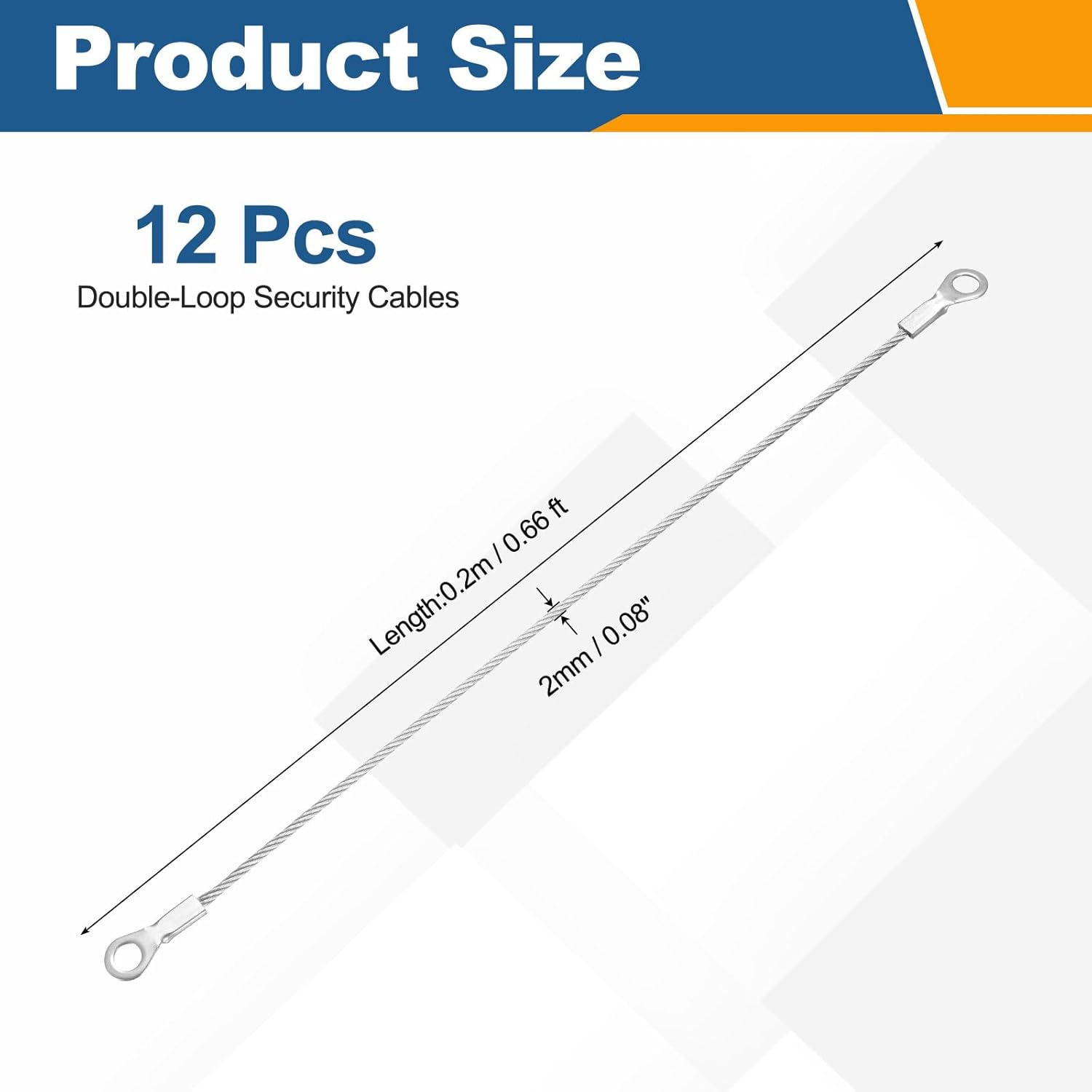 【Safe & Durable】: 12Pcs Double-Loop Security Cables: Length: 0.2m / 0.66 ft / 8 inch, Dia.: 2mm / 0.08 inch. 304 stainless steel cables has excellent corrosion resistance, rust prevention, toughness and wear resistance, high strength and hardness. Completely sealed in a smooth vinyl coating, it prevents scratches on contact surfaces, enhances rust resistance, water resistance and long-term durability.【Wide Application】: Security cables are a versatile locking accessory suitable for securing luggage, bicycles, doors, windows, and other items. These steel cables are also commonly used in garden design, clothing adjustments, ropes, pet leashes, hanging paintings, and installing railings. Travel security cable lock, suitable for a variety of lock types, including U-locks, padlocks, disc locks, and keychain cable locks.【Easy Install】: Quick installation, no tools required. Simply connect the items with the cable wire rope, and then secure the double loops with a small combination lock, padlock, or keychain cable lock. Double-loop safety rope features integrated loop structures at both ends, providing ample connection space.【Meet Your Needs】: This cable rope locks combine damage prevention, hanging clips, and home decoration functions. It features aluminum crimped sleeves with locking rings at both ends for a more stable pause. Braided cable structure is flexible and sturdy, combining strength and flexibility, making it a practical and useful item for daily needs.【Use Tips】: Please don't use for lifting or pulling heavy objects; only suitable for use as a safety rope and for suspending light items.