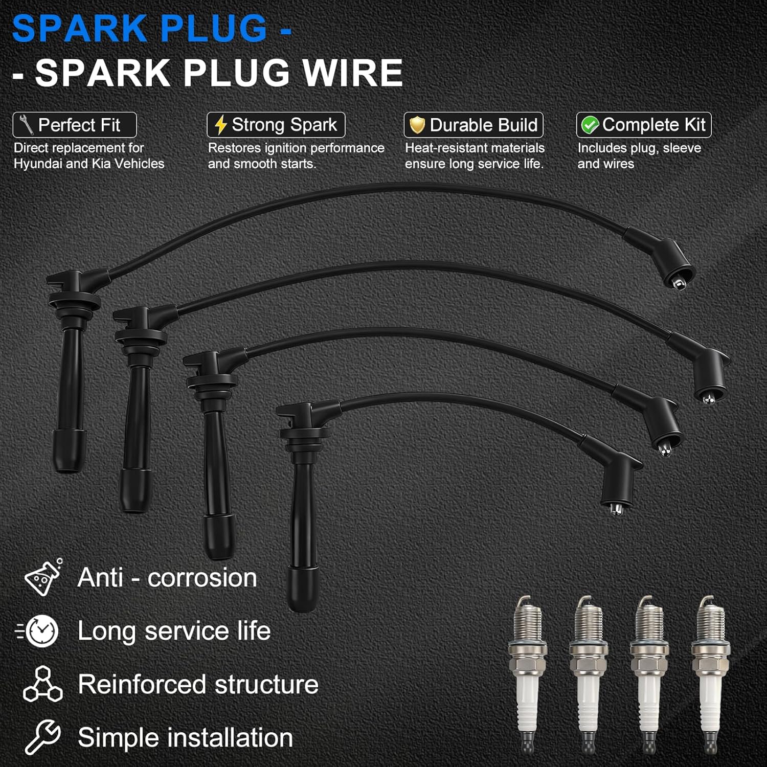 | Included Components | Set of 4Pcs premium Iridium Spark Plugs + Spark Plug Wires |