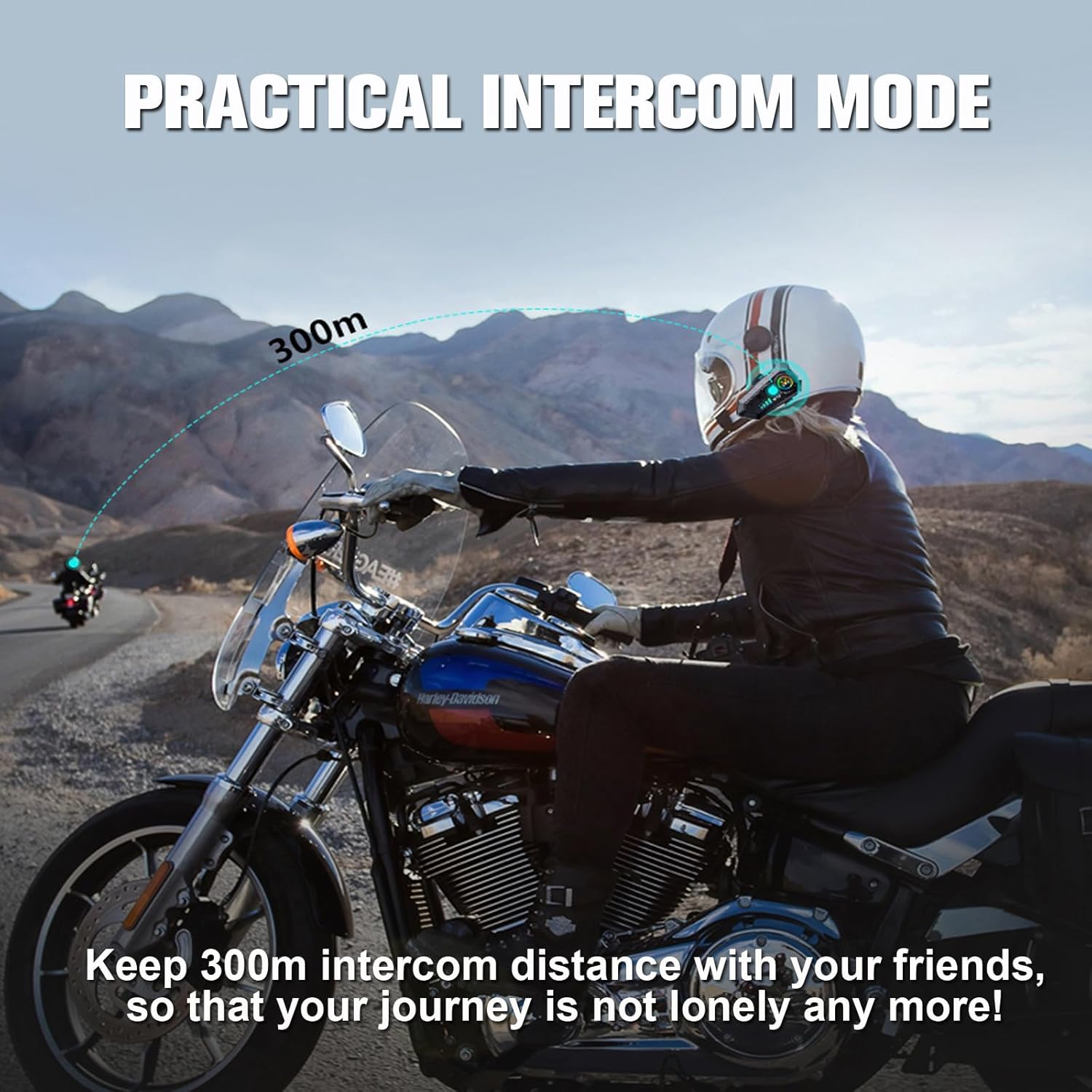 Specification :Bluetooth version : 5.3Headphone battery capacity : 1000mAhTransmission distance : about 10mIntercom distance : about 300mDuration of communication : 25 hoursDuration of intercom : 15 hoursHeadphone charging time : 2.5 hoursWaterproof level : IPX6Support system : all devices and mobile phones that support BluetoothPacking List :2 * Helmet bluetooth headset2 * TYPE-C cable2 * Back clip2 * Replaceable hard mic and soft mic two-in-one speakers2 * Velcro installation package1 * User manual1 * Exquisite packaging boxNotes :1. Please read the instruction manual carefully before use.2. If you receive a defective product or have any questions during use, please feel free to contact us.