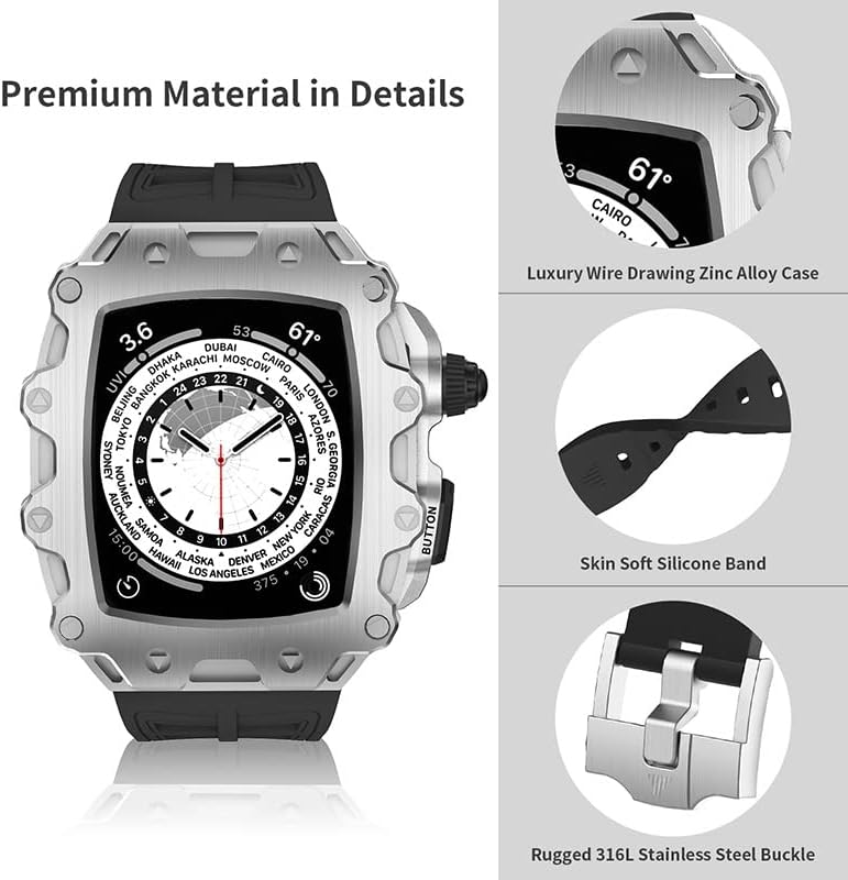Box Package*1Watch Band*1Watch Case*1Set of tool *1Sleek, modern design that complements a wide range of watch styles and personal aesthetics.Adjustable length ensures a perfect fit for comfortable, all-day wear.Easy-to-use buckle for quick fastening and release, enhancing convenience and usability.Durable construction withstands daily wear and tear, maintaining its appearance over time.Versatile color options to match or contrast with your watch face and wardrobe choices.